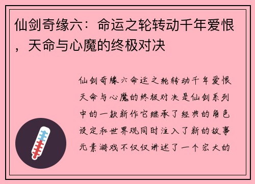 仙剑奇缘六:命运之轮转动千年爱恨,天命与心魔的终极对决