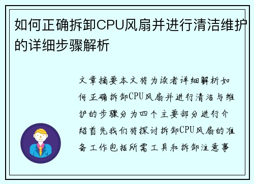 如何正确拆卸CPU风扇并进行清洁维护的详细步骤解析